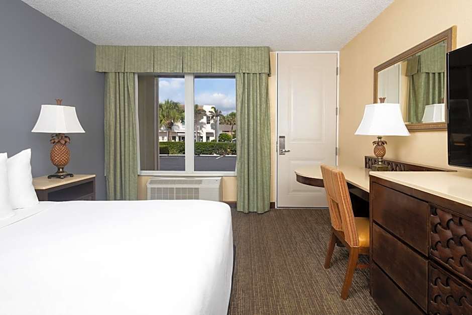 This room overlooks the landscaped pool area.
